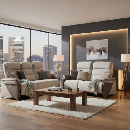 Ensemble canapé relax électrique 3pl + canapé fixe 2pl tissu micro peau mastic - NADIR.