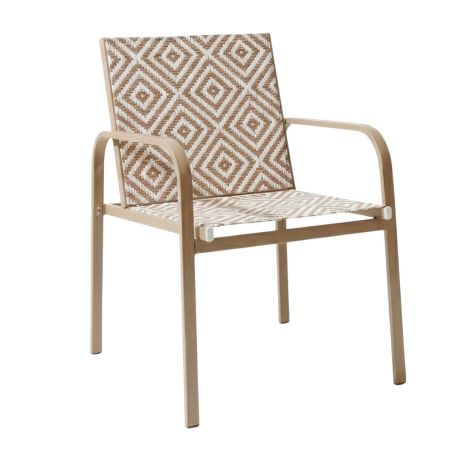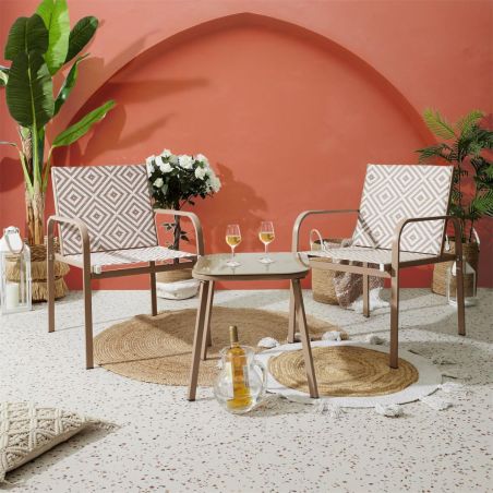 Ensemble jardin 2 fauteuils avec table basse motifs graphiques beige - AZTEK.