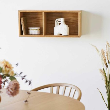 Etagère murale 2 niches en placage chêne - KALLYS. Une étagère murale design et légère en chêne à la teinte miel qui trouvera sa place partout dans la maison.