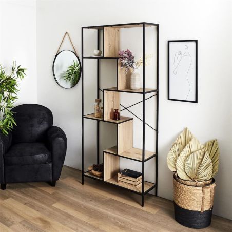 Etagère 6 Niveaux Aspect Bois et Métal Noir Endis.