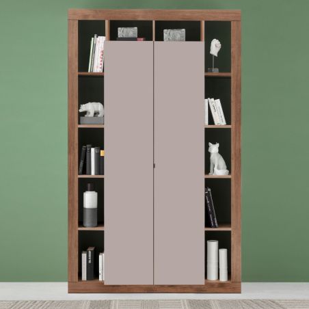 Colonne 2 portes avec encadrement 12 niches beige et aspect bois finition Mercure - LIMANI.