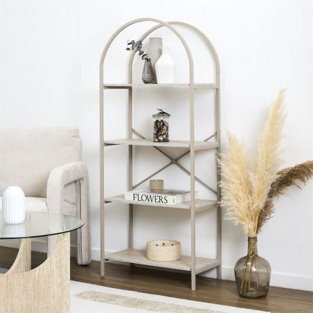 Etagère design arche 4 niveaux en métal laqué beige plateaux MDF aspect pierre naturelle - SHANON.
