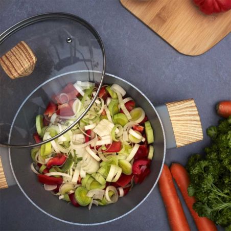 Faitout Aluminium Forgé 28 cm avec manche effet bois, compatible tous feux (induction), pour une cuisson uniforme.