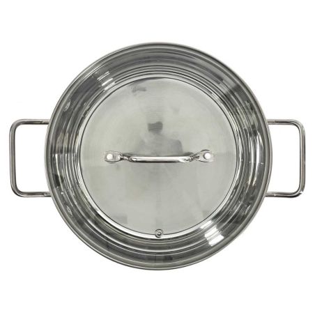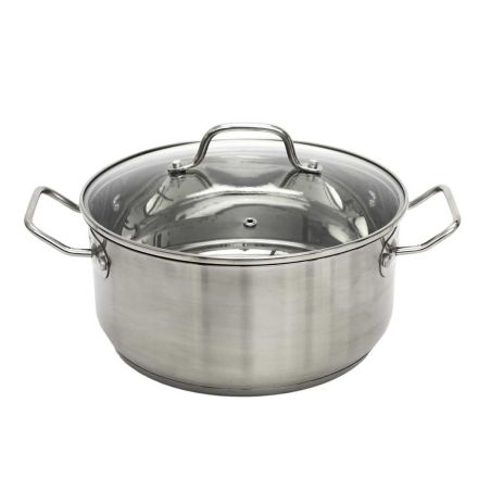 Faitout en inox durable et robuste, avec un couvercle en verre transparent pour un contrôle facile de la cuisson.