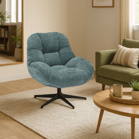 Fauteuil Pivotant En Tissu Polyester Vert bleuté de la gamme Noam.