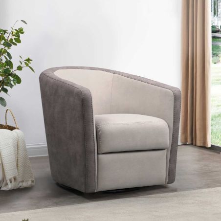 Fauteuil cabriolet pivotant 360° tissu micro peau mastic et brun taupe - GINKO.