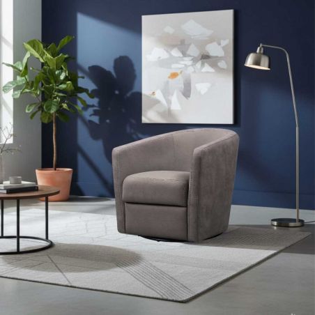 Fauteuil cabriolet pivotant 360° tissu micro peau brun taupe - GINKO.