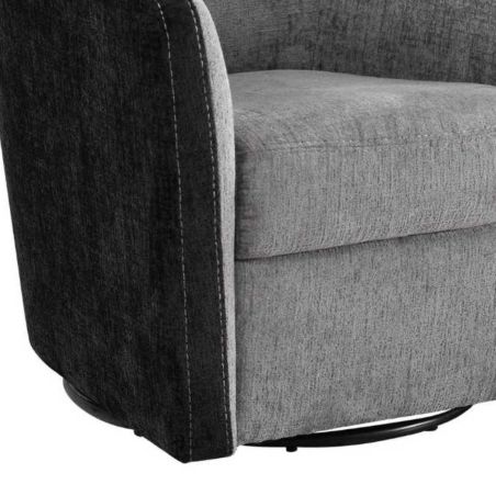 Fauteuil cabriolet pivotant 360° tissu chenillé bi-colore gris foncé et gris carbone - GINKO.