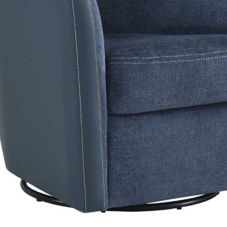 Fauteuil cabriolet pivotant 360° tissu chenillé bi-colore et PVC bleu - GINKO.