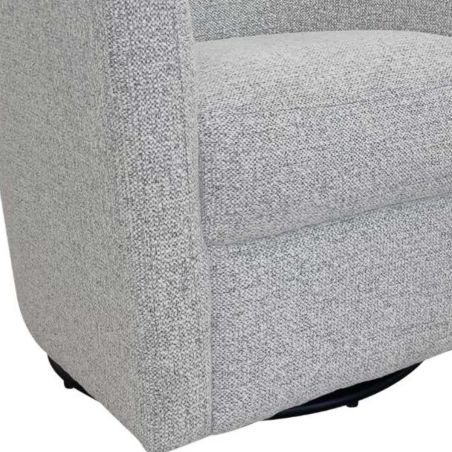 Suspension : Assise: ressorts ensachés sur ressorts No-Zag à plat. Dossier: sangles élastomère et No-Zag. Mousse polyuréthane «Haute Résilience» densité assise 28 Kg/m3, dossiers et accoudoirs 22 Kg/m3. Tissu chiné 100% polyester. Piétement : Base métallique tournante