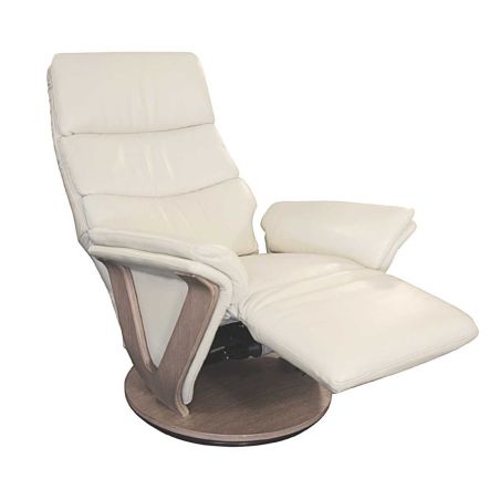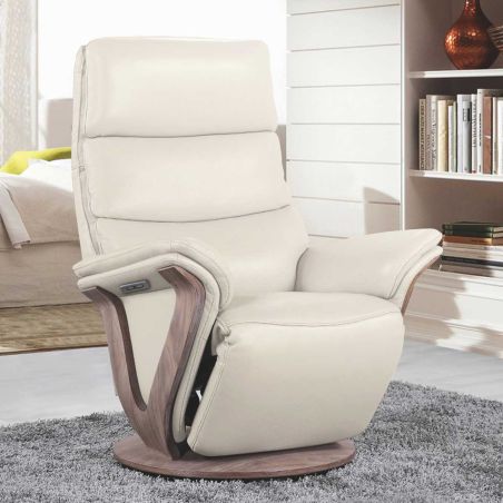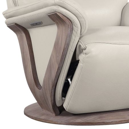 Fauteuil relax électrique pivotant bi-moteur en cuir/pvc couleur gris clair pied en bois. - HOLLY.