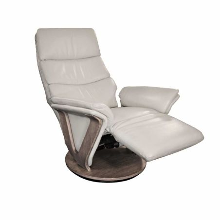 Fauteuil relax électrique pivotant bi-moteur en cuir/pvc couleur gris clair pied en bois. - HOLLY.