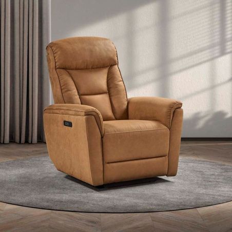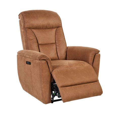 Fauteuil relax électrique tissu microfibre cognac - RIMSKY.