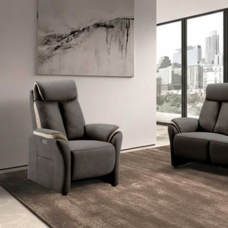 Fauteuil Relax Electrique New Nobuck Gris Foncé et Beige de la gamme Coimbra.