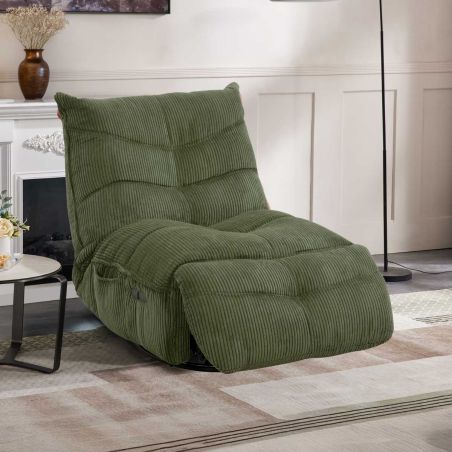 Fauteuil relax pivotant avec fonction rocking-chair velours côtelé vert - JUMBO.