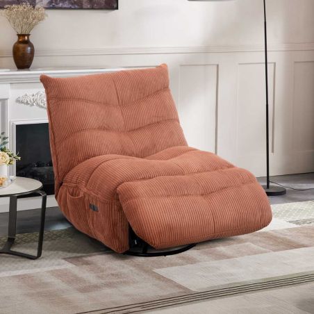 Fauteuil relax pivotant avec fonction rocking-chair velours côtelé terracotta - JUMBO.