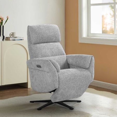 Fauteuil relax électrique pivotant tissu maillé polyester ultra doux gris - LAMA.