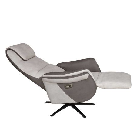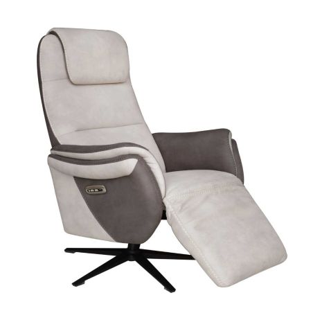 Fauteuil relax électrique pivotant tissu polyester micro peau brun et mastic - NADIR.
