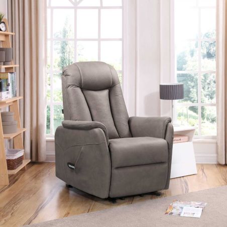 Fauteuil relax électrique releveur bi-moteur tissu brun peau mastic - NEDIA.