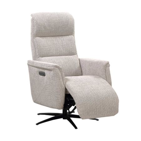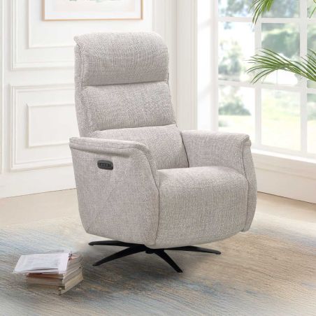 Fauteuil relax électrique pivotant tri-moteur tissu croisé naturel réglable en hauteur - JOHNY.
