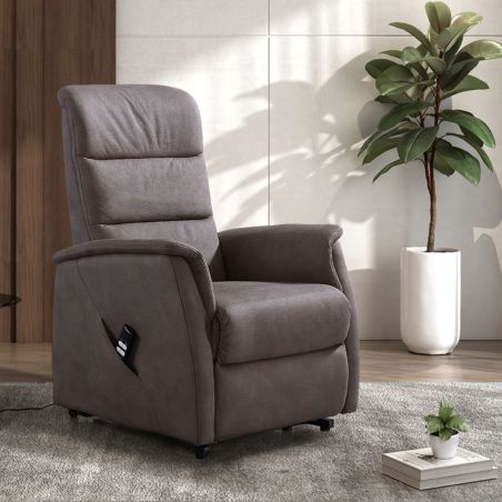 Fauteuil relax releveur tissu polyester imitation cuir gris-brun marbré de la gamme Donatello.
