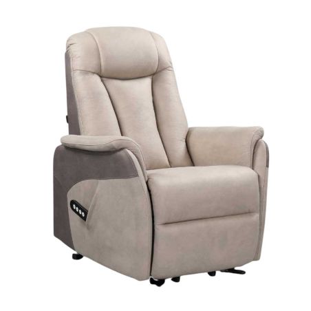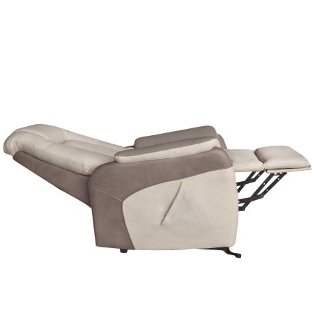 Fauteuil relax électrique releveur bi-moteur tissu micro peau mastic et brun taupe - NEDIA.