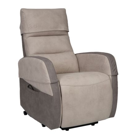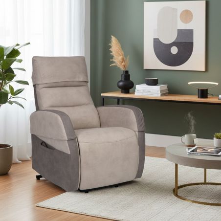 Fauteuil relax releveur tissu polyester imitation cuir gris et beige - NYMPHAEA.