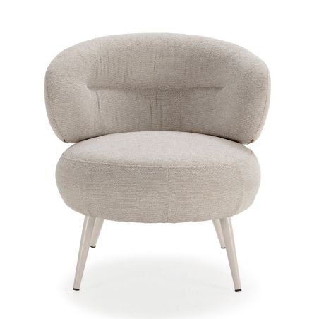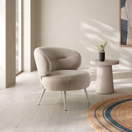 Fauteuil lounge en tissu polyester doux et pieds en métal laqué coloris beige - LIVONE.