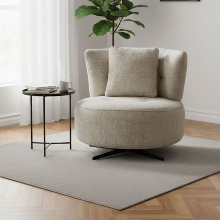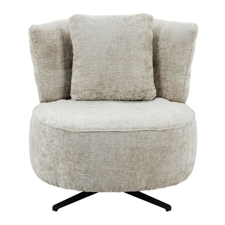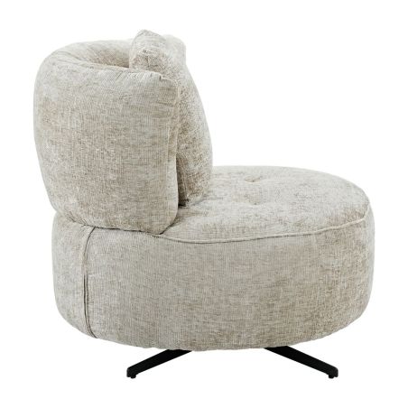 Fauteuil lounge pivotant en tissu chenillé beige piètement métal noir avec coussin dorsal - MIRAGE.