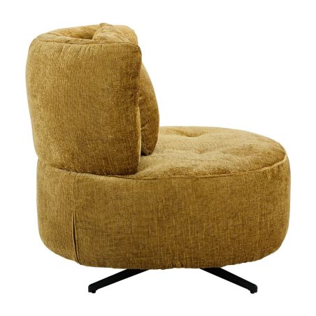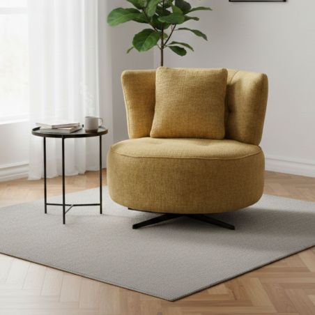 Fauteuil lounge pivotant en tissu chenillé jaune moutarde piètement métal noir avec coussin dorsal - MIRAGE.