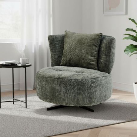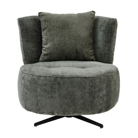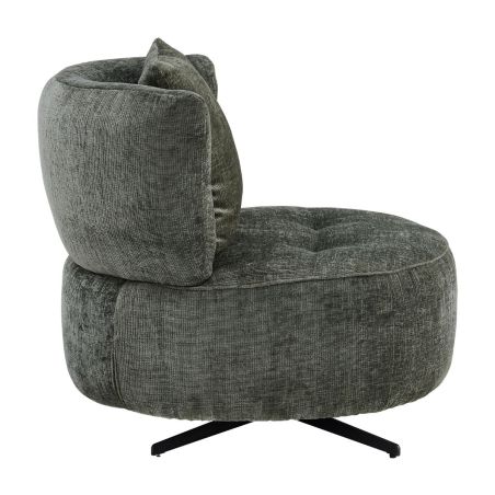 Fauteuil lounge pivotant en tissu chenillé vert piètement métal noir avec coussin dorsal - MIRAGE.
