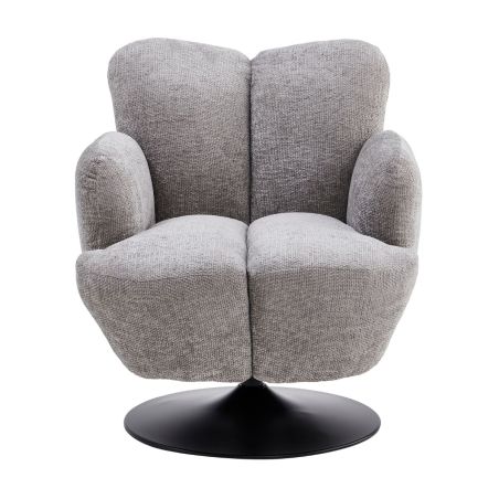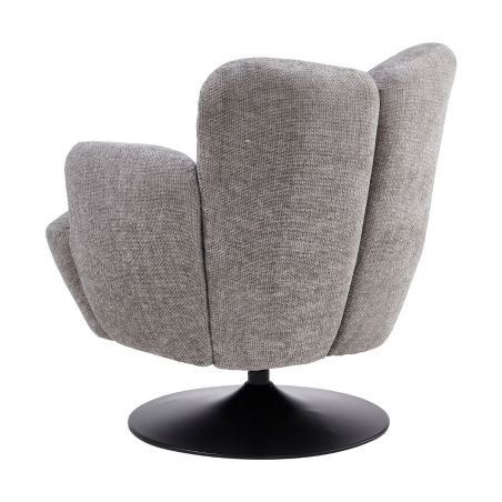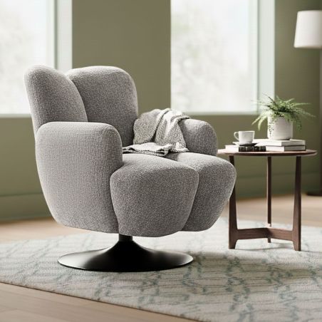 Fauteuil lounge pivotant avec accoudoir en tissu chenillé gris piètement socle métal noir - GOTHAM.