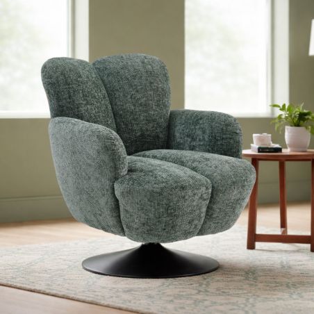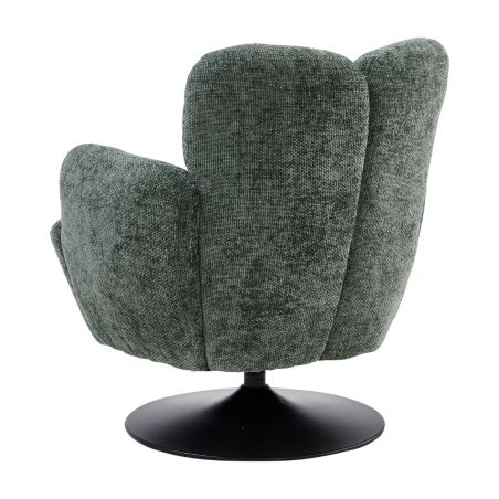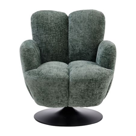 Fauteuil lounge pivotant avec accoudoir en tissu chenillé vert piètement socle métal noir - GOTHAM.