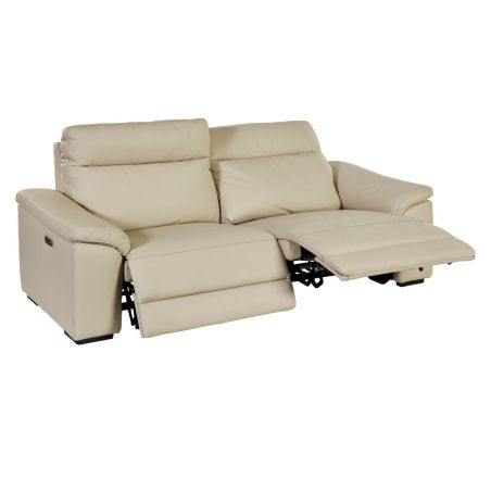 Canapé Relax Electrique 3 Places + Canapé 2 Places Fixe en cuir écru - STANLEY.