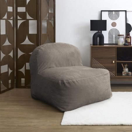 Chauffeuse lounge en mousse et tissu velours côtelé taupe - AMORY.