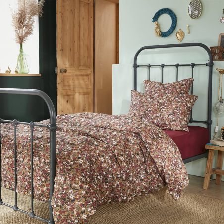Housse de Couette 140x200cm Gaze de Coton Fond Brun Motifs Fleurs de la gamme Adonis.