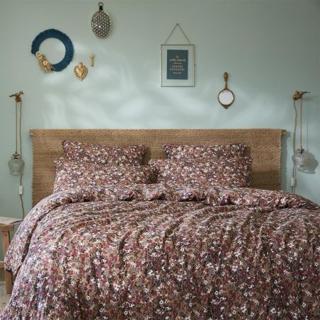 Housse de Couette 200x200cm Gaze de Coton Fond Brun Motifs Fleurs de la gamme Adonis.