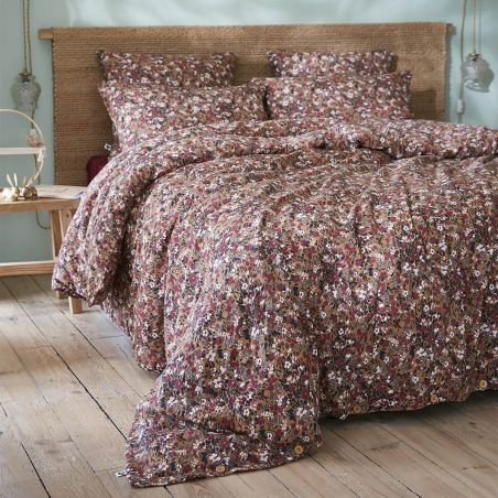 Housse de Couette 260x240cm Gaze de Coton Fond Brun Motifs Fleurs de la gamme Adonis.