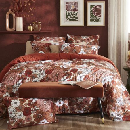 Housse de couette 200x200cm gaze de coton imprimé Floral coloris terracotta - ANASTASIA.
