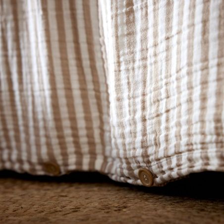 Housse de couette 240x220cm gaze de coton tissé rayé beige - ROMELIA.