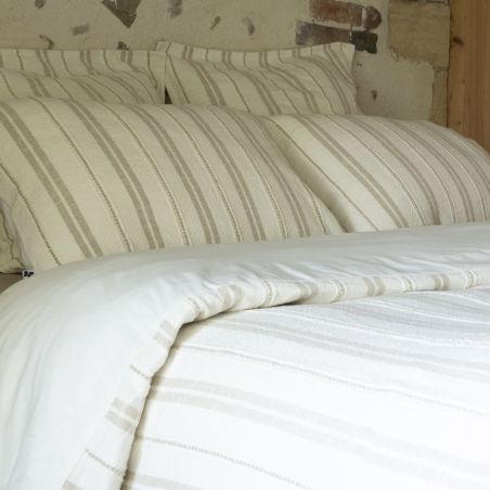 Housse de couette 260x240cm coton tissage texturé coloris blanc rayé beige - TITOUAN.