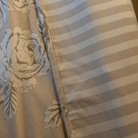 Housse de Couette 140x200cm coton imprimé recto floral verso rayé beige - COTTAGE.
