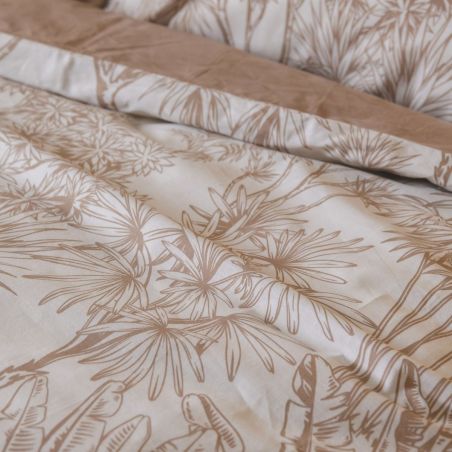 Housse de Couette 240x220cm coton imprimé feuillage blanc et sable - JAVEN.