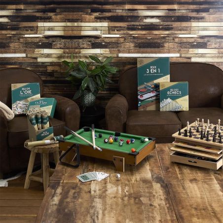 3 jeux : Billiard, Ping-Pong, Hockey. Tout le matériel nécessaire pour chaque jeu est inclus !