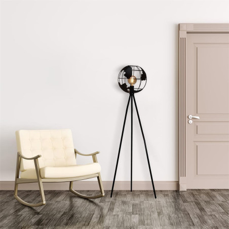 Lampadaire Globe Terrestre en Métal Noir Ajouré H158cm.