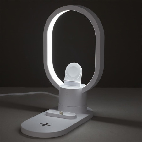 Lampe LED Blanche en Anneau avec Station de Charge 3-en-1 Intégrée.