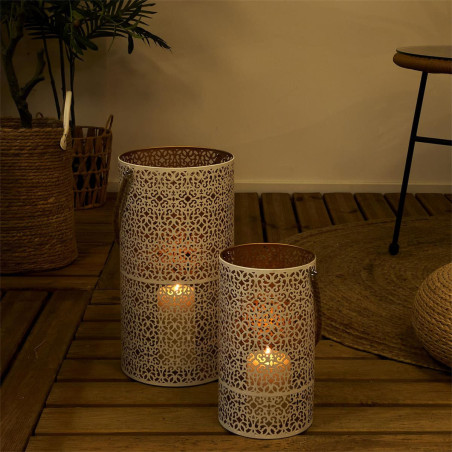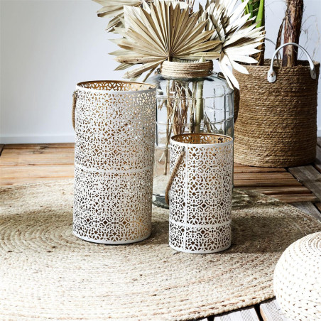 Duo de Lanternes Métal Ajouré Blanc et Or.