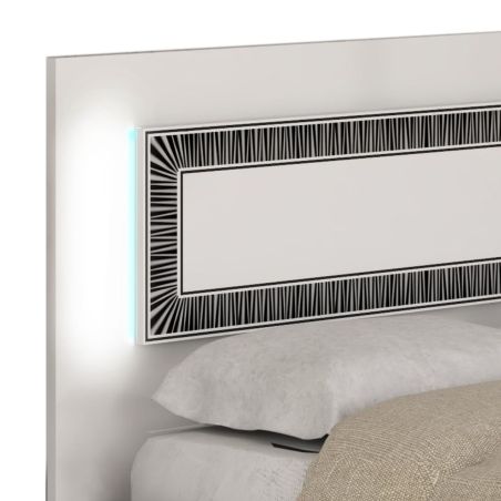 Ce lit apporte un style ultra chic grâce à sa finition laquée blanche et son décor marbre noir.