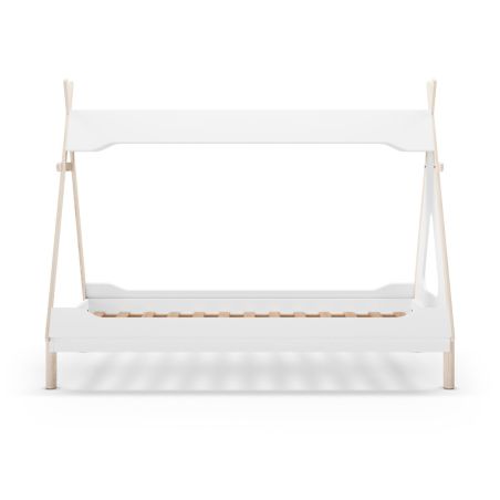 Lit tipi 90x190 en MDF et pin massif laqué blanc et ciré naturel - NOLIAN.