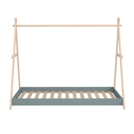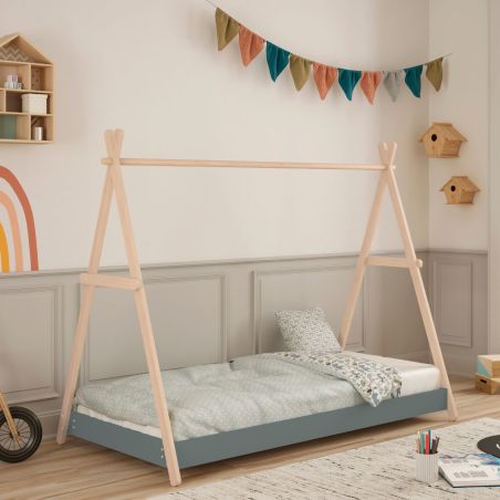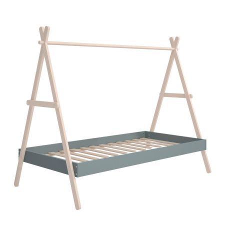 Lit tipi 90x200cm hauteur réglable en MDF laqué vert kaki et pin massif naturel - KANOA.